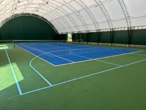 Ovaj teren, pokriven modernom balon halom, omogućava igru tokom cele godine, bez obzira na vremenske uslove
