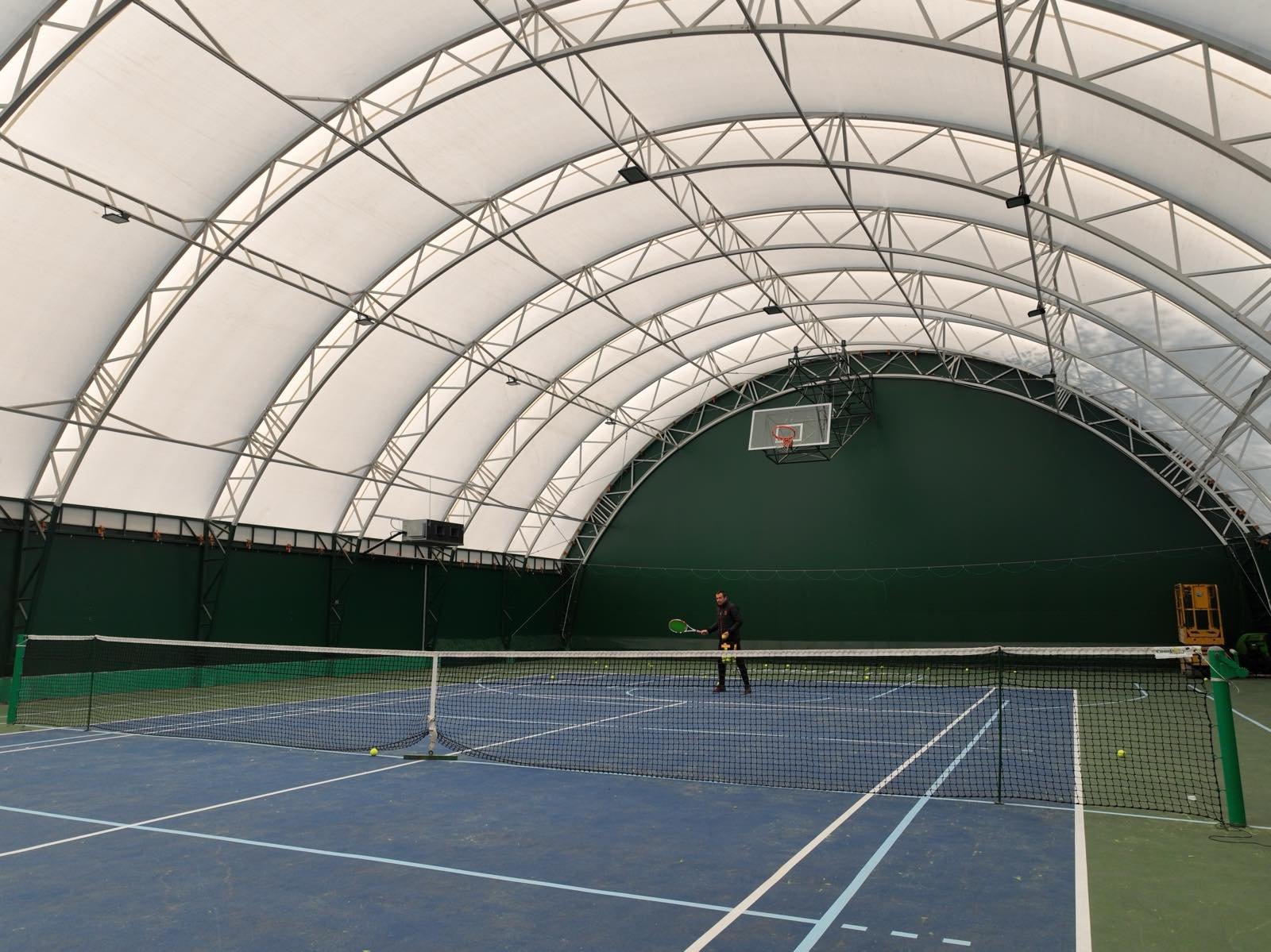 Ovaj teren, pokriven modernom balon halom, omogućava igru tokom cele godine, bez obzira na vremenske uslove